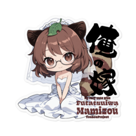 ステッカー - 160 x 160 (mm)(キャラのみ)🤎【永遠の誓い】二ツ岩マミゾウ「俺の嫁」ウエディング・コレクション解禁!💍✨ 「化かすのはもうおしまい。――これからは、あんただけの『嫁』じゃ。🔔」 東方Projectの頼れる大親分、二ツ岩マミゾウが、驚くほど可憐な純白のウエディングドレス姿であなたの元へ!👰 🤎 これは単なるグッズではありません。彼女を**「俺の嫁」として人生に迎え入れ、種族も時間も超えた永遠の愛を誓い合うための特別な「結婚」**記念セレモニーです。💐✨ 特徴的な大きな尻尾と耳はそのままに、幸せいっぱいの微笑みを浮かべる「チビキャラ」姿のマミゾウさん。 彼女との粋で甘い新婚生活を、今この瞬間からスタートさせましょう!🎊🥰 この商品はpixivFACTORYで作られた商品です。サンプル画像は完成イメージのため、実物と異なる場合があります。