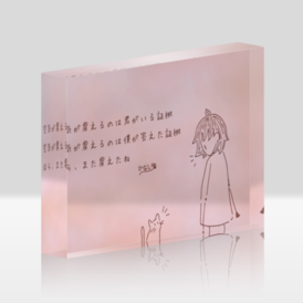 アクリルブロック - 148x100mmこの商品はpixivFACTORYで作られた商品です。サンプル画像は完成イメージのため、実物と異なる場合があります。 ひなしろの詩シリーズ第二弾「息づく距離」より、第六篇のデザインのアクリルブロックです。お家や職場に置くだけで、優しさのかけらを感じることができます。