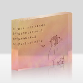 アクリルブロック - 148x100mmこの商品はpixivFACTORYで作られた商品です。サンプル画像は完成イメージのため、実物と異なる場合があります。 ひなしろの詩シリーズ第二弾「息づく距離」より、第十篇のデザインのアクリルブロックです。お家や職場に置くだけで、優しさのかけらを感じることができます。