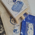 青セット トートバックセット(ミニ巾着2つ+パンダステッカー6種類+一部手書きミニキャンバス)