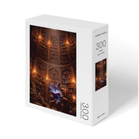天井まで届く巨大な本棚、 舞い散る光の粒子、そして静かにページをめくる賢者の猫――。 まるでファンタジー映画のワンシーンのような、 幻想的な魔法図書館の風景をジグソーパズルにしました。