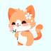 やさしい表情のねこが、小さなお花をそっと抱えている
