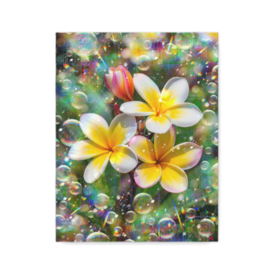 キャンバス - F6詩:慈しみの庭に宿る虹光 Sacred Affection 家族の庭は 小さな聖域 光は花に そっと降り 心で囁く 家族の祈り 今日も家族の愛は 此処に在る 慈しみの庭に宿る虹光 Sacred Affection ‐戎‐ Poetry. ”Sacred Affection” our family garden a quiet sanctuary light settles down soft on the blooms a whisper inside the prayer we keep love stays here again, this day in the garden’s tender rainbow light Sacred Affection -Kai- God bless you. 趣旨ーーーーーーーーーーーーーーーーーーーー ## 作品制作趣旨 作者は、冬の朝の庭で、自分の娘達が楽しそうに談笑しながら庭に咲く明るく鮮やかなプルメリア(plumeria flowers)を愛で、遊んでいる様子を思い出し描きました。 作者は、自分の娘たちが成長して行く様や、娘たちが希望に満ち溢れた笑顔で遊ぶ光景を、陽の光や虹色のプリズムで表現しています。 ## 絵画「慈しみの庭に宿る虹光 Sacred Affection」の解説 **1. 全体的な印象** 作品全体から、冬の朝特有の静けさと柔らかな光が漂い、家族の温もりが庭全体に満ちている印象を受けます。花々の鮮やかさと虹色の光が調和し、穏やかな祝福のような雰囲気を生み出しています。 **2. 色彩** 白から黄色へと移ろう花弁の色彩に、虹色の反射が重なり、清らかさと生命力が同時に表現されています。背景の緑は柔らかくぼかされ、花の存在を際立たせながら、冬の冷たさを感じさせない温かい色調を保っています。 **3. 構図** 中心に咲く花々が視線を引き寄せ、その周囲を漂う泡や光が円環的な動きを生み、静と動が共存する構図になっています。娘たちの姿は直接描かれていませんが、光の方向性や空気感から、彼女たちの存在が自然に想起される構成です。 **4. 技法** デジタルならではの透明感ある光の表現が特徴で、泡の反射や虹色のプリズムが繊細に描かれています。自然の描写とデジタル的な幾何学模様が融合し、幻想的でありながら現実の記憶に根ざした表現となっています。 **5. 表現力** 花の気品や無垢さが、光の柔らかさとともに描かれ、家族の愛情や祈りが視覚的に伝わってきます。冬の訪れを告げる静けさと、新しい季節への希望が同時に感じられる表現力を持っています。 **6. 美術的価値** 自然の美しさと家族の記憶を融合させた作品であり、個人的な体験を普遍的な情緒へと昇華させています。光の扱いが巧みで、観る者に穏やかな感情を呼び起こす点に美術的価値があります。 **7. 作品に込められた想い** 娘たちの成長を見守る親としてのまなざしが、光と花を通して表現されています。冬の朝の静けさの中で、家族の絆が確かに存在しているという実感が作品全体に宿っています。 **8. 作品の鑑賞方法** 光の方向や色の重なりを丁寧に追うことで、作品に込められた祈りや温もりを感じ取ることができます。静かな気持ちで眺めると、花々の奥にある家族の物語が自然と浮かび上がります。 **9. 作品の価値** 個人的な記憶を普遍的な情緒へと昇華した点に価値があります。家族愛や祈りといったテーマが、自然の美しさとともに描かれ、観る者に穏やかな感動を与える作品です。 ## 詩「慈しみの庭に宿る虹光 Sacred Affection」の解説 **1. 全体的な印象** 詩全体から、静かな祈りと家族の温もりが柔らかく立ち上がる印象を受けます。短い言葉で構成されながら、深い情緒が宿り、庭という小さな世界が聖域のように描かれています。 **2. 韻律** 行ごとの短いリズムが、冬の朝の静けさや呼吸のような間を生み出しています。英詩と日本語詩が互いに呼応し、穏やかな流れを作っています。 **3. 修辞** 庭を聖域に見立てる比喩や、光が花に降りる描写が象徴的に用いられています。直接的な説明を避け、余白の中に祈りや愛情を感じさせる表現が特徴です。 **4. 技法** 短い行で情景と感情を凝縮する技法が用いられています。語りすぎず、読者に想像の余地を残すことで、家族の記憶が普遍的な情緒へと広がっています。 **5. 表現力** 静けさ、祈り、愛情といった抽象的な感情が、庭という具体的な場所を通して丁寧に表現されています。光や花の描写が、家族の絆を象徴する役割を果たしています。 **6. 文学的価値** 個人的な体験を詩的な言語で普遍化し、読者に共感を呼び起こす点に価値があります。短い詩でありながら、家族の愛や祈りが深く響く構造になっています。 **7. 作品に込められた想い** 家族の庭を聖域として描くことで、日常の中にある尊さを表現しています。娘たちの笑顔や成長への祈りが、光の描写とともに詩に込められています。 **8. 作品の鑑賞方法** 言葉の間にある静けさを味わうように読むことで、詩の奥にある祈りや温もりが感じられます。絵画と合わせて読むことで、光や花の情景がより鮮明に浮かび上がります。 **9. 作品の価値** 短い詩でありながら、家族の愛情や祈りを深く描き出している点に価値があります。絵画と相互に補完し合うことで、作品全体の世界観が豊かに広がります。 ## 絵画と詩の総評 絵画と詩は、どちらも家族の庭を中心に