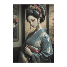 ポスター - B2この商品はpixivFACTORYで作られた商品です。サンプル画像は完成イメージのため、実物と異なる場合があります。 落ち着いた青鈍色の着物に身を包み、静かに視線を落とす花魁の姿を描いた和風アートポスターです。 室内の柔らかな光と、控えめな色彩が、上品で内省的な美しさを引き立てます。 伝統的な花魁の佇まいを、静謐で現代的な感覚で表現した一枚です。 和室や落ち着いた空間のインテリアアートとしておすすめです。