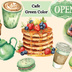 カフェ素材10点セット|アンティークグリーン|水彩画風クリップアート|PNG
