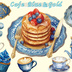 深みのあるブルーと上品なゴールドを組み合わせた、 アンティーク調のカフェモチーフ・クリップアート素材です。