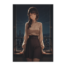 ポスター - B2この商品はpixivFACTORYで作られた商品です。サンプル画像は完成イメージのため、実物と異なる場合があります。 落ち着いた色合いのニットとスカート姿で、夜景を背に佇む女性を描いた現代アニメ調ポスターです。 柔らかな微笑みと自然体の立ち姿が、大人の余裕と親しみやすさを感じさせます。 都会的でありながら温かみのある雰囲気の一枚です。