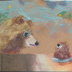「たぬき、たぬきケーキと出会う」ちぎり絵原画