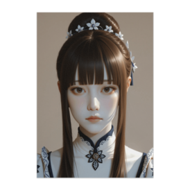 ポスター - B2この商品はpixivFACTORYで作られた商品です。サンプル画像は完成イメージのため、実物と異なる場合があります。 白と紺を基調にした装いと、繊細な花の髪飾りが印象的なポートレートです。 正面からの構図で、静かで凛とした眼差しを丁寧に描いています。 落ち着いた雰囲気の中に、やさしさと気品を感じさせる一枚です。