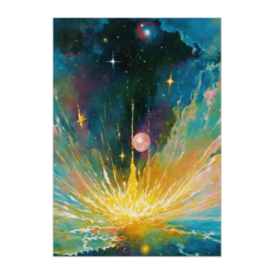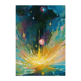 ポスター - B2この商品はpixivFACTORYで作られた商品です。サンプル画像は完成イメージのため、実物と異なる場合があります。 宇宙の深淵から光が噴き上がる瞬間を描いた、 水彩と油彩を思わせる抽象アート作品です。 星々のきらめきと色彩の爆発が重なり合い、 静けさとエネルギーの両方を感じさせます。 見る人の想像力によって、さまざまな物語が立ち上がる一枚です。 空間に奥行きと幻想性を加えたい方におすすめです。