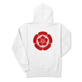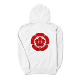 織田信長 家紋 織田木瓜 パーカー 白に赤