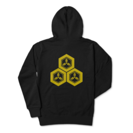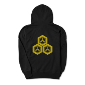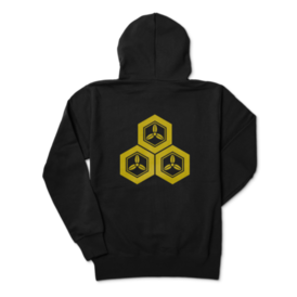 直江兼続 家紋 三つ盛亀甲に三つ葉 パーカー 黒に金