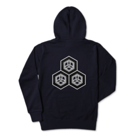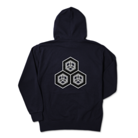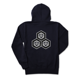 直江兼続 家紋 三つ盛亀甲に三つ葉 パーカー 紺に黒