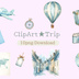 水彩×水色 アンティーク旅行クリップアート|やさしいパステル旅素材 PNG