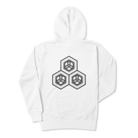 直江兼続 家紋 三つ盛亀甲に三つ葉 パーカー 白に黒白