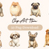「お座りしている犬」水彩アンティーク風クリップアート10点セット PNG背景透過