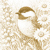 【塗り絵図案】シジュウカラと野花