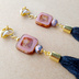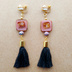 レトロなチェコスクエアビーズとコットンタッセルのイヤリング(A)
