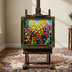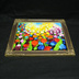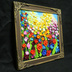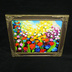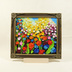 【原画】油絵「colorful flower garden」色紙/ 鮮やかな花畑の風景画 リビングや玄関に飾る花の絵 額縁あり