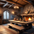 厳しい狩りを終えた者たちが身体を休める、山岳地帯の狩猟小屋の居間。 大きな石造りの暖炉では薪が赤々と燃え、室内を包み込むような暖かな火明かりを放つ。 木の床には獣毛の敷物が広がり、重厚な木製テーブルと長椅子が無骨に据えられている。 壁には角や頭骨などの狩猟の証が飾られ、過酷な生活と誇りが静かに語られる。 荒々しさと安らぎが同居する空間を、シネマティックな光と奥行きで描いた背景素材です。 【収録内容】 - 薪が燃える大きな石造りの暖炉 - 獣毛の敷物が敷かれた木床 - 重厚な木製テーブルとベンチ - 壁に飾られた角や頭骨の狩猟戦利品 - 火明かりが満ちる温かくも無骨な居間 【ご利用について】 ・解像度2048×1152px、JPG形式 ・商用利用可/加工・加筆自由 ・クレジット表記は任意 狩りの終わりに訪れる静かな休息を、物語の一幕に。