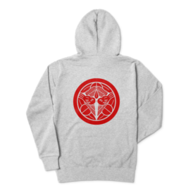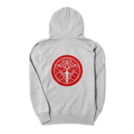 上杉謙信 家紋 竹に飛び雀 パーカー グレーに赤