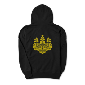 豊臣秀吉 豊臣秀頼 家紋 五七の桐 パーカー 黒に金