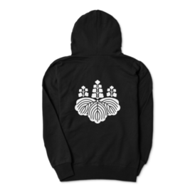 豊臣秀吉 豊臣秀頼 家紋 五七の桐 パーカー 黒に白