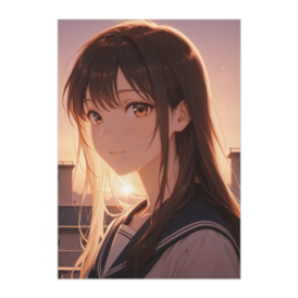 ポスター - B2この商品はpixivFACTORYで作られた商品です。サンプル画像は完成イメージのため、実物と異なる場合があります。 夕焼けに染まる屋上を背景にした、 透明感のある現代アニメテイストのポスター作品です。 柔らかな光と落ち着いた表情が印象的で、 お部屋のインテリアや鑑賞用として楽しめます。