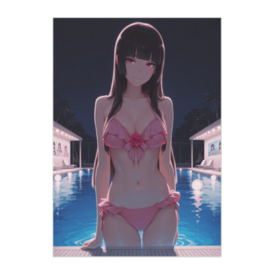 ピンクビキニの姫髪ナイトプール美少女ポスター