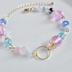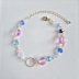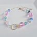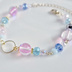ラウンドフープ付き☆ルナフラッシュとガラスビーズの可愛いピンクブルー色のブレスレット
