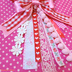 Rose In The Heart Rosette Brooch ① ¥16,500(税込) ※イベント店頭価格とは異なります。 海外のバレンタインキャンディboxをイメージしたロゼットは、土台の生地は勿論、リボンやレースにも薔薇のモチーフをふんだんに。 薔薇モチーフの中にもドットやストライプ等のリボンでCandyらしいポップさも籠めています♡ 裏側の仕様はブローチピン&クリップになります。 ヴィンテージの生地、フリル、レース、リボンを使用している物があります。 汚れ等の無い部分を使用しておりますが、万が一見落としがございました際はご容赦下さい。 衝撃等に因りパーツが取れる可能性がございますので、お取り扱いにはお気を付け下さい。 リボンが長い為、梱包時に一部を畳むor折らせて頂く場合がございます。 皺等でアイロンを掛ける際は、先端のピケ処理部分、糊付け処理部分、プリントリボンが溶ける恐れがありますので、当て布をして頂く等、アイロンが触れない様お気を付け下さい。 ◆サイズ◆ (※使用しているリボン等の幅に因り個体差があります) 縦:約28.5~30cm ハート部分横:約15~16cm ※ご購入制限はございません。 ※別途送料が370円掛かります。 サイトシステムの都合上、お会計を分けてご購入された場合、同梱が出来ません。 都度送料が発生しますのでご了承下さいませ。