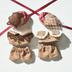 チョコレートをイメージしたセットアップ🍫 約11cm程のプライズぬいなどに着用していただけます。 ビターチョコとスイートチョコをイメージした2パターンご用意しております。 それぞれ帽子・トップス・ズボンの3点セットです。 ズボンは大きめのお作りにしておりますので、少し足の長さのあるぬいや尻尾などのついたぬいにもどうぞ!