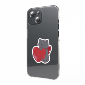 スマホステッカー - 縦バレンタイン用の期間限定デザインステッカーです! 赤いハートのボンボンショコラと、赤リボンをつけた黒ねこちゃんの可愛いイラストを持ち歩いてみませんか? 期間:2/14〜2/17