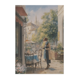 ポスター - B2この商品はpixivFACTORYで作られた商品です。サンプル画像は完成イメージのため、実物と異なる場合があります。 やわらかな光に包まれたヨーロッパの街角カフェをイメージしたアート作品です。 花と街並み、穏やかな空気感を水彩油彩タッチで表現し、インテリアにも馴染む落ち着いた雰囲気に仕上げました。 お部屋のアクセントや癒しの空間づくりにおすすめのポスターです。