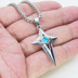 ステンレス シルバーカラー クロススタースタイリッシュネックレス スカイブルー ラインストーン 長さ調整可 アジャスター可