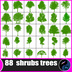 Procreate, Photoshop, PS, ブラシ, スタンプ, 低木, 樹木, 木, 自然, 景観, 背景素材, 建築パース, シルエット, 植物, 庭, 公園, イラスト素材, 88種, 緑, デザイン, デジタルアート, ランドスケープ, 植栽, 茂み, 素材集