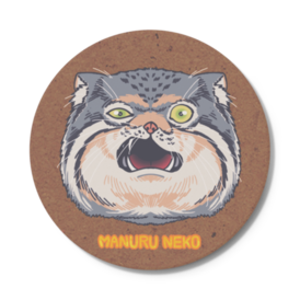 コースター - 円形コースター、直径10.3 × 厚み0.8。 吸水性が抜群の白雲石という素材を使用。 裏面は滑りにくく、机に傷がつきにくいコルク製です。 「マヌルネコといえば“ブサかわ”」を意識したコースターです。 インテリアにしてもOK! 米原のぞみ作。 ※この商品はpixivFACTORYで作られた商品です。サンプル画像は完成イメージのため、実物と異なる場合があります。