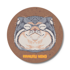コースター - 円形コースター、直径10.3 × 厚み0.8。 吸水性が抜群の白雲石という素材を使用。 裏面は滑りにくく、机に傷がつきにくいコルク製です。 「珍しい表情のマヌルネコ」を意識したコースターです。 インテリアにしてもOK! 米原のぞみ作。 ※この商品はpixivFACTORYで作られた商品です。サンプル画像は完成イメージのため、実物と異なる場合があります。