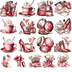 【商用利用可】レッドファッション水彩クリップアート65点セット|高解像度・透過PNG|印刷OK・コラージュ・ジャンクジャーナル素材|即ダウンロード