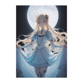 ポスター - B2この商品はpixivFACTORYで作られた商品です。サンプル画像は完成イメージのため、実物と異なる場合があります。 満月の光に包まれ、静かに佇む月光の聖女。 青銀の幻想的な世界観と、落ち着いた神秘性が魅力のアートポスターです。 夜の静寂と美しさを感じさせる、幻想的で上品な一枚としてお楽しみいただけます。