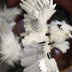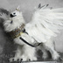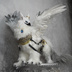 𓇬𓇬𓇬 スノーヒッポグリフ𓇬𓇬𓇬 Snow Hippogriff 誕生日 2/14 [作品について] 西洋の幻獣、"ヒッポグリフ" をモチーフに制作したアートドール作品。中にワイヤーが入っていて全身動かせるのが特徴です。 ヒッポグリフは上半身が鷲で下半身が馬の姿をしており、古代ローマの作品にも登場しています。 白馬の王子がこの作品のメインコンセプトで、 そこにシロフクロウ、ライチョウや作家の世界観をミックスしました。 [ストーリー] 甘い香りのする、凍える日に 彼は生まれた 重い雪に足を取られながら ここまで続いた長い足跡 足跡は交差し やがて二列になる 金のきらめきは飾りではなく 託された重み 吹雪さえも 追い風に変えよう __________ [可動部位] 耳、口、首、ボディ、手足、尻尾、前足指、翼 [大きさ] 体高 32cm(翼をたたんだ状態) 50cm(翼を上げた状態) 体長 65cm 75cm(尻尾伸ばした状態) 翼開長 75cm [付属品] 耳冠×1, 翼飾り×1, 馬具 全て取り外し可能 __________ [お取扱い注意点] -繊細な作りですので優しく扱ってください。 -可動部位の芯材はステンレスワイヤーとアルミワイヤーを併用しております。金属疲労による折れの原因となりますので押しつぶすように曲げるのはお避けください。 -作品が汚れてしまった場合: 水拭きに耐えられます。優しく拭いてあげてください。 -毛並みが乱れた時は犬猫用ブラシまたは歯ブラシで梳かして頂きますと元通りになります。 -修繕が必要になった場合はご連絡ください。修繕承ります。 -材質: ガラスデカールアイ、フェイクファー、アルミワイヤー、ステンレスワイヤー、綿、アクリル絵具、UVレジン等 __________ ご質問等ございましたら気軽にご質問くださいませ。
