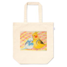 トートバッグ - M - プリント面積中イラストレーターmoeがデザインしたインコ好きのためのかわいいグッズです。 この商品はpixivFACTORYで作られた商品です。サンプル画像は完成イメージのため、実物と異なる場合があります。