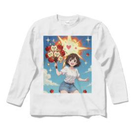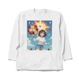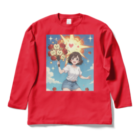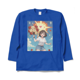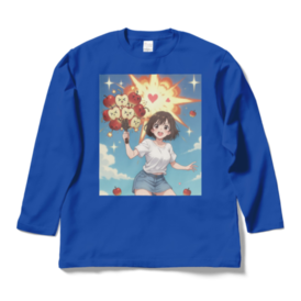 ロングスリーブTシャツ - XL - ロイヤルブルーりんごちゃんたちが全力で爆発中!!🍎💥 かわいい表情のりんごたちが「×_×」「゜ロ゜」「(´・ω・`)」って顔で束になって、ドカーン!と大爆発! 周りにハートが飛び散り、星がキラキラ、青空にりんごの実が散らばる超元気でポップなイラストです。 元気いっぱい&ちょっとシュールな感じがたまらない、日常を明るくしてくれるデザイン! Tシャツにプリントしたら背中や胸でドーンと目立って可愛いし、 ステッカーやスマホケースにしても毎日元気もらえそう♪ りんご好きさん、爆発好きさん、かわいい×カオスなイラストが好きな人にぴったり! オリジナルデザイン © 2025 – 無断転載・複製禁止 この商品はpixivFACTORYで作られた商品です。サンプル画像は完成イメージのため、実物と異なる場合があります。