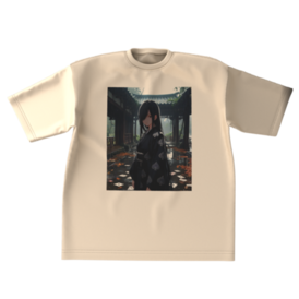 ビッグシルエットTシャツ - XL - 正面(3)雨の古寺で静かに佇むスペードの女王。 漆黒の着物に銀糸で浮かぶスペードの刺繍、片目隠れの長い黒髪、地面に散らばる濡れたトランプ… 運命を切り裂くような冷たい視線と、雨に濡れた幻想的な雰囲気。 ダークファンタジー好き、和風アニメファン、クールビューティー好きに刺さる一枚です。 オリジナルデザイン © 2025 – 無断転載・複製禁止 この商品はpixivFACTORYで作られた商品です。サンプル画像は完成イメージのため、実物と異なる場合があります。