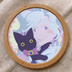 アクリル原画 木製トレー丸『七星とノワール』