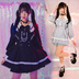 Jillpunk 量産型 ゆめかわ ロリータ ゴシック聖詩 ネクタイ付き ダブルブレストドレス フリルヘム 長袖シャツワンピース+ショートパンツ セット オリジナル 姫系 可愛い おしゃれ ファッション萌え 秋葉原