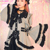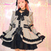 Jillpunk 地雷系 ダーク ゴシックロリータ 吸血鬼学園 リボンタイ付き 姫袖ブラウスワンピース フリルヘム 長袖ドレス ショーパン2点セット オリジナル 姫系 可愛い おしゃれ ファッション萌え 秋葉原