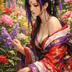 背丈ほどに咲き誇る花々に囲まれた庭園で、 静かに花を眺める女性の姿を描いたアニメ風イラストです。 中華王朝時代を思わせる化粧と、 髪に差し込まれた紫のメッシュ。 鮮やかな着物を少し着崩した佇まいが、 華やかさと内省的な時間を同時に感じさせます。 賑やかさから切り離された、 神妙で穏やかなひとときの空気感を大切にしています。 本作品は鑑賞用イラストです。 • 画像サイズ:2667 × 4001 px • ファイル形式:PNG • 商用利用:不可 ※本作品は AIを活用して制作 しています。 This anime-style illustration depicts a woman quietly standing in a garden filled with flowers as tall as herself. Her makeup evokes the atmosphere of an ancient Chinese dynasty, while a subtle purple highlight in her hair adds a modern contrast. The loosely worn, vibrant kimono reflects both elegance and introspection. The artwork captures a solemn and tranquil moment, separated from noise and motion, inviting calm contemplation. This piece is intended for personal viewing only. • Image size: 2667 × 4001 px • File format: PNG • Commercial use: Not allowed ※ This artwork was created with the assistance of AI technology.