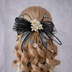 ビーズ揺れる透ける黒のリボン飾り 送料込み
