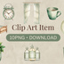 朝の始まりに、やさしいひと息を🌿☕ 朝ルーティンをテーマにした水彩クリップアート10枚セットです。 落ち着いたくすみグリーンカラーとヴィンテージ感のある水彩タッチで、 静かで心地よい朝の時間をイメージしました。 PNG形式・背景透過なので、すぐに使えます。 セット内容 ・PNG 10枚(背景透過) ・デジタル素材のため、PC・スマホですぐ使用可能 利用について / Terms of Use • 個人・商用利用OK / Personal & commercial use allowed • 再配布・再販売禁止 / Redistribution or resale prohibited 推奨の使い方 ・朝ルーティン・ライフログデザイン ・SNS投稿、ブログのアクセント ・Canvaデザイン、手帳デコ、ノートなど 💡使い方自由自在! 印刷して紙素材としても、 デジタルデザイン素材としてもご活用いただけます。